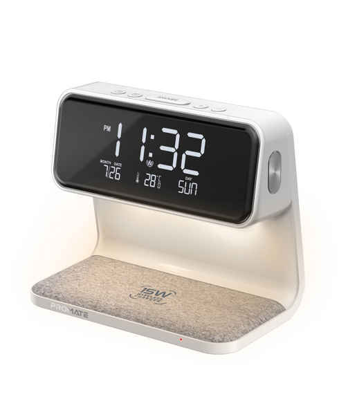 The PROMATE Lumix-15W is a versatile 3-in-1 device that combines a 15W wireless charger, a dual-alarm digital clock with a snooze function, and a soft LED night light with three adjustable brightness levels.